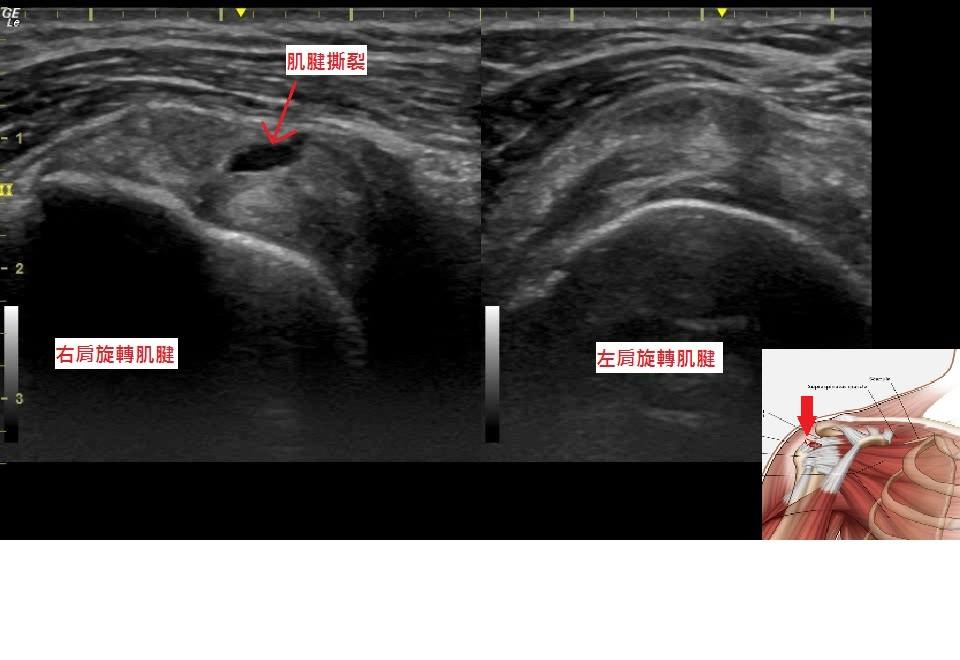 肩痛半年的患者,一直以為是五十肩,結果超音波下發現是旋轉肌腱撕裂傷。