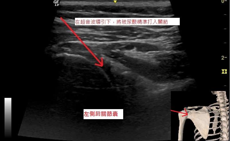 【圖1&2】肩痛的患者,超音波可以協助診斷肩關節問題及輔助醫師精準注射。